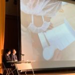 ステージに座り、大きなスクリーンに映像を流しながら