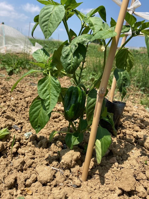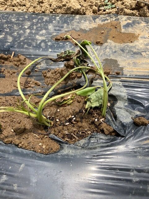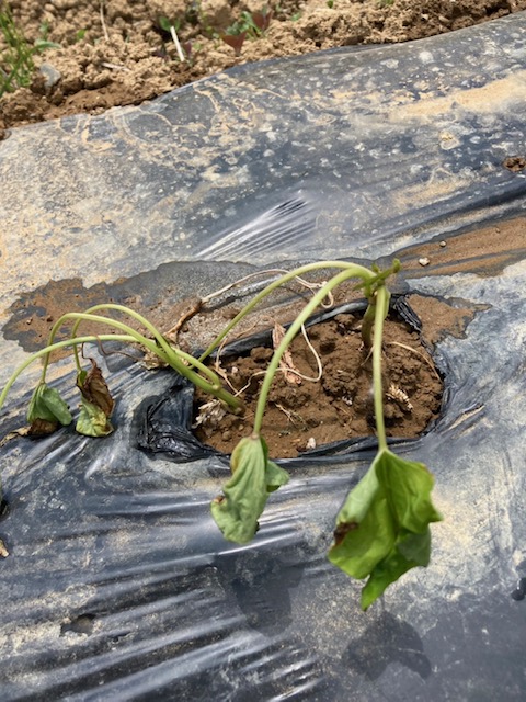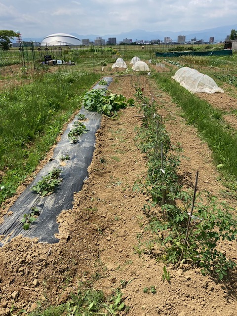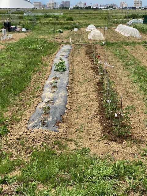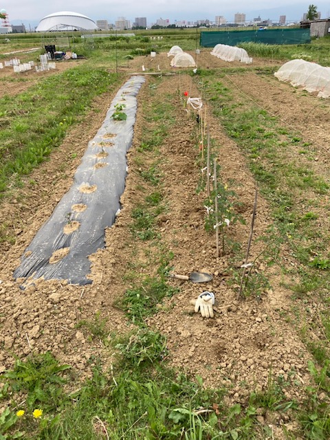 今年は、畑担当職員が頑張ってマルチを張りました!!