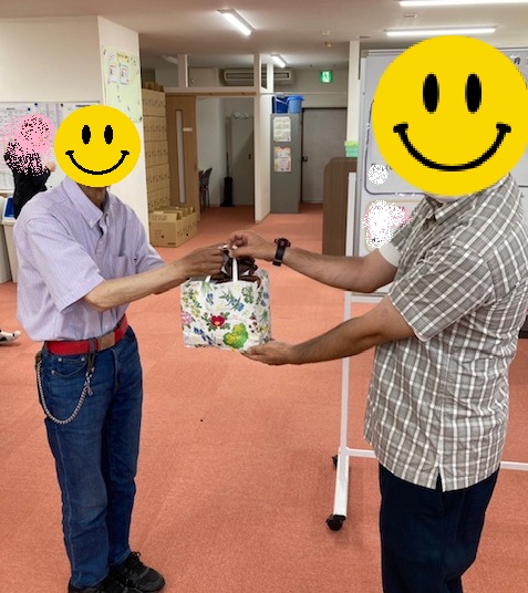ちょっとしたプレゼントを用意して、誕生者とプレゼントを渡す係に選ばれた利用者から一言をもらっています。