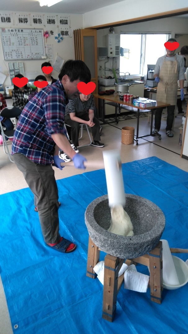 今日は鏡開きということで、餅つきをして、ついた餅を色々な味付けをして食べました。