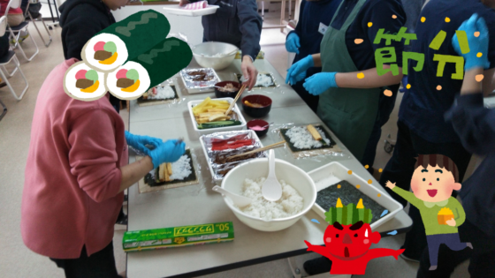 豆まきと恵方巻づくりをしました。