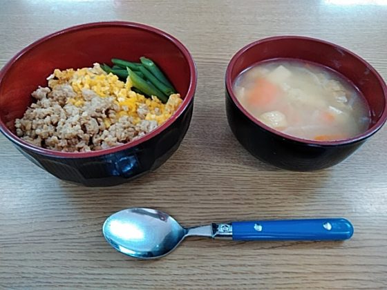 金曜日の給食は三色丼でした。