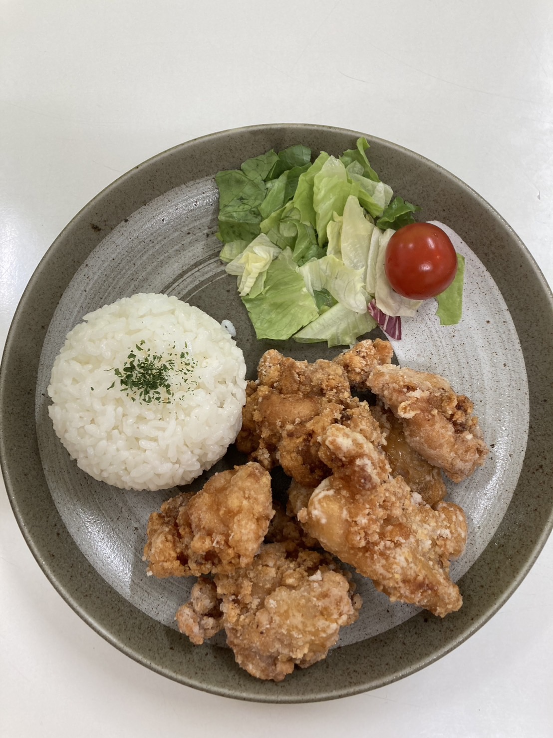 ←昼食は希望者のみです。職員が愛をこめて唐揚げ作りました♡ 🐑でした。
