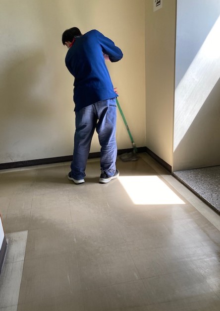 Mさんは、社内清掃を行っています。