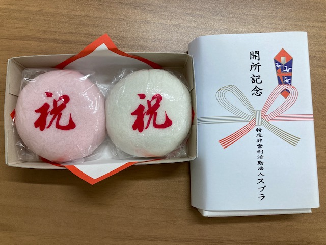 紅白饅頭を渡しました。