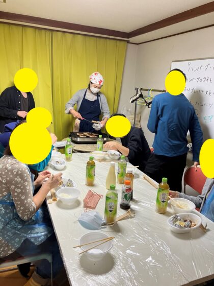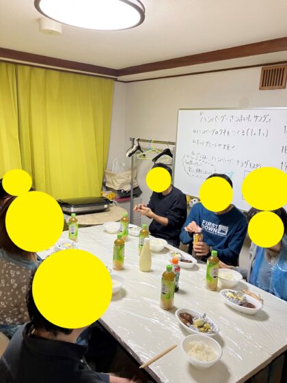10/18は夕食会でハンバーグとサツマイモサラダを調理して食べました。