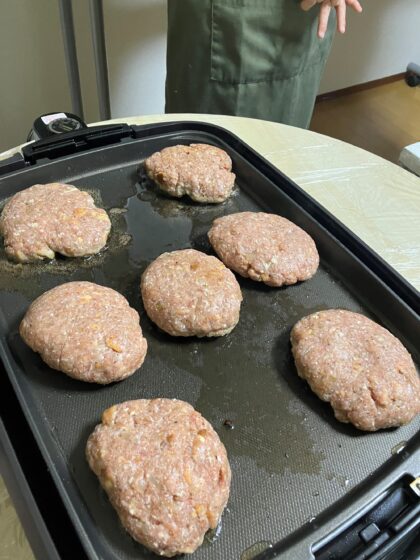 皆さんにはハンバーグの形成を手伝って貰いました!