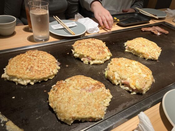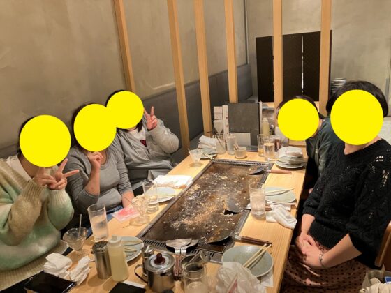 この店舗は、焼くのが苦手な方の代わりに店員さんがサービスで焼いてくるのお店で、皆さん焼くのをお願いしていました。