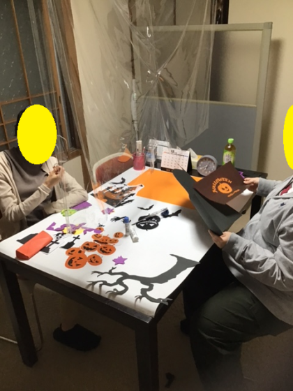 10/9は、「10/26 ハロウィンパーティー」の飾りを作る為に皆さんに協力して貰いました。