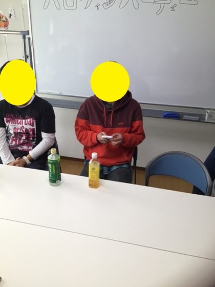 ゲームに勝った方からハロウィンらしくお菓子のつかみ取りを行いました。