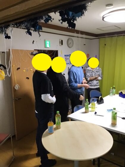 皆明日のパーティーの為に、立体的な蜘蛛の巣を作ったりと考えて飾りつけを行っており、会場がハロウィンの様相にどんどん変わっていきました。