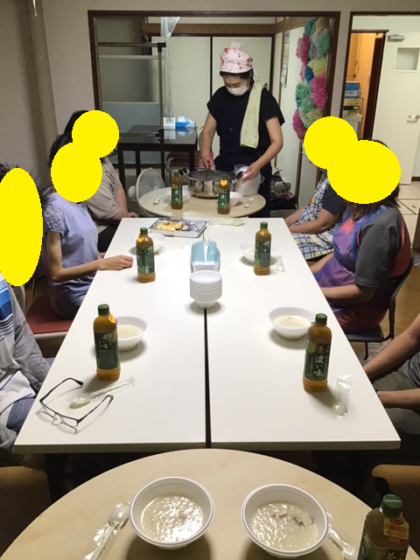 9/12の夕食会では、リピーターの機会に応えた、肉巻きおにぎりと手作りシェイクでした。
