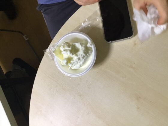 必要な材料を入れて揉むだけの簡単な作業でアイスとヨーグルトでシェイクが出来ていました。