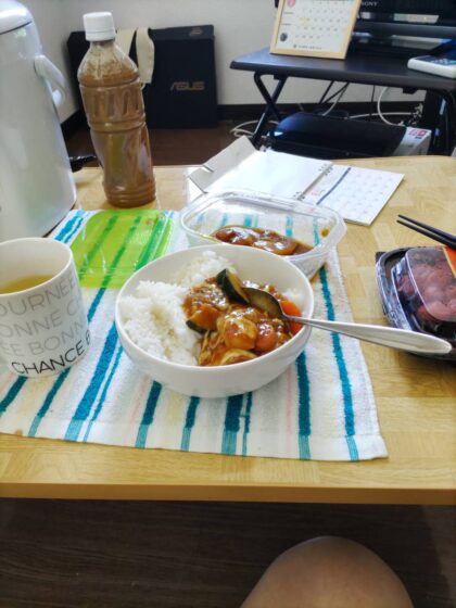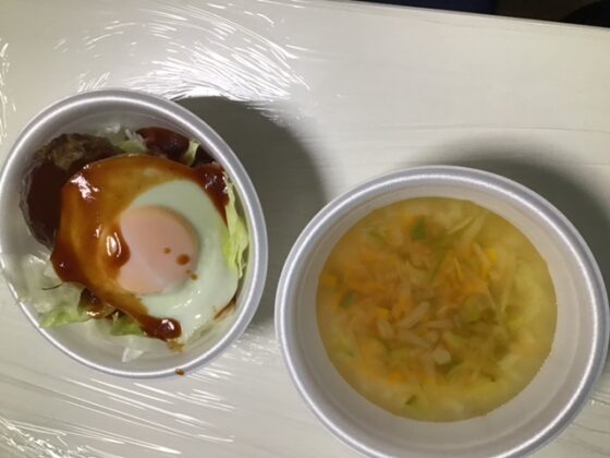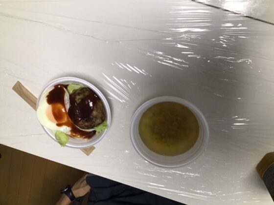 8/8は夕食会という事で、皆さんと一緒にロコモコ丼とスープを作って食べました。