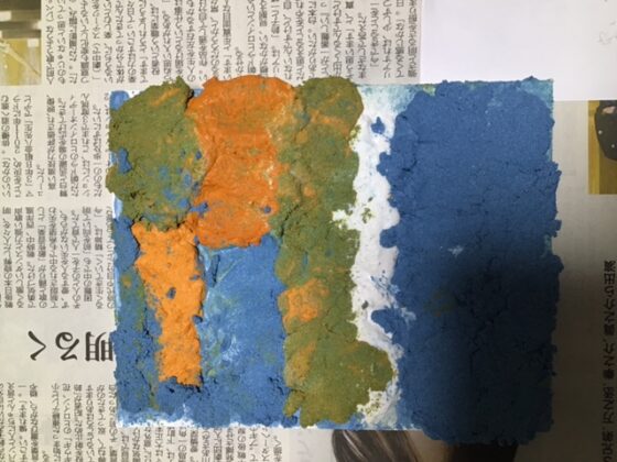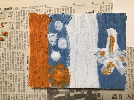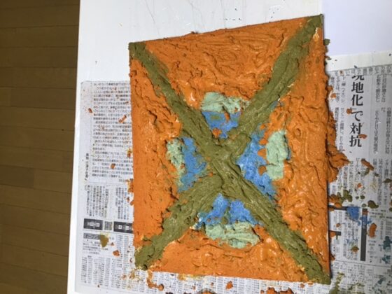 絵の具に重曹を入れるとこのようにかなりの立体感が出てきます。それを使って絵を描くアートです。