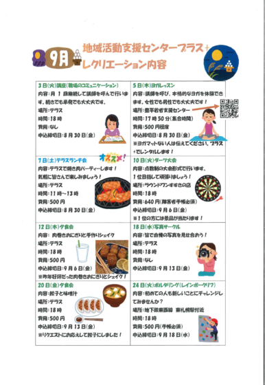 9 月のレクリエーションの詳細をブログにも載せていきたいと思いますので、ご確認お願い致します。