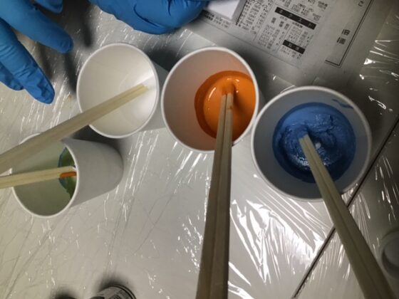 書き方は自由で、風景を描いたり、絵の具に絵の具を重ねてさらに立体的に作ってみたり、作品も各々独創的な物が出来上がっていました!