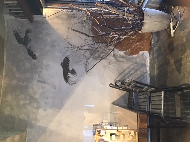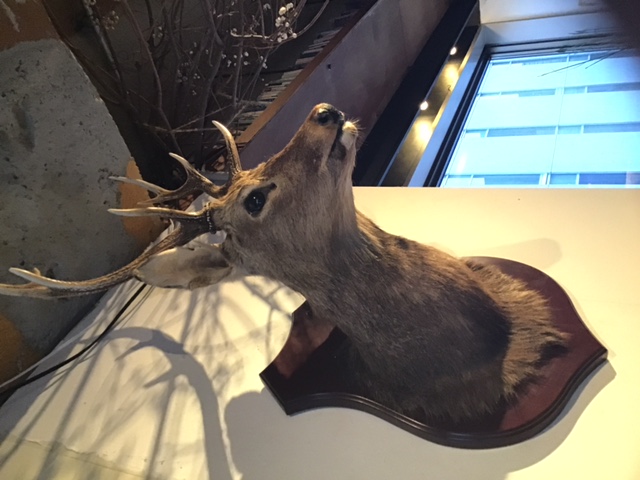壁を見るとカラスが飛んでいたり、シカのはく製があったりと見るだけでも楽しく話題につきませんでした。