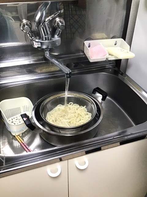 今回は使う麺の量が多かったので鍋でうどんを茹でましたが、