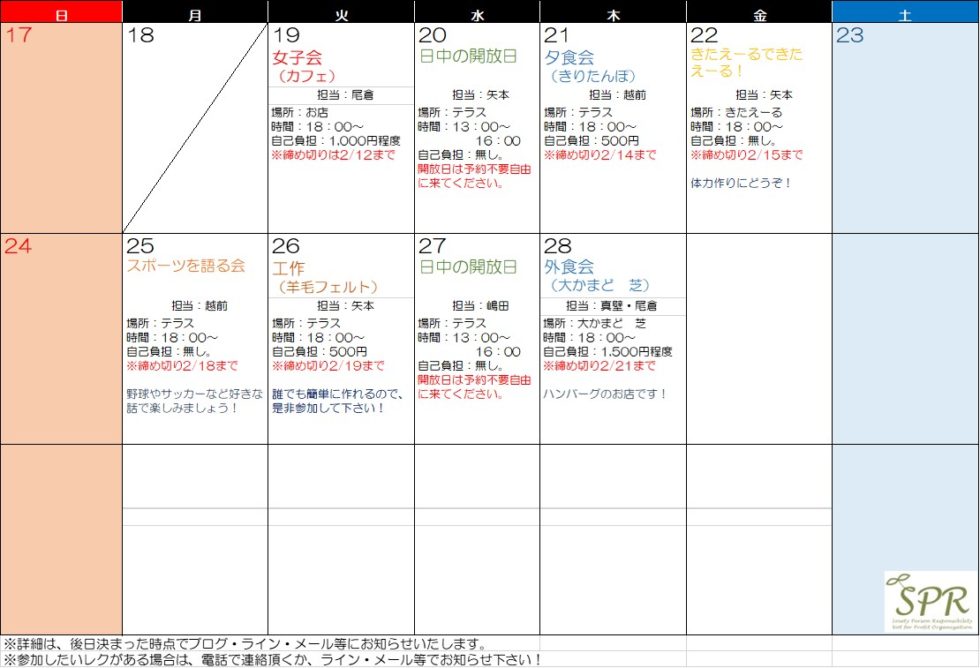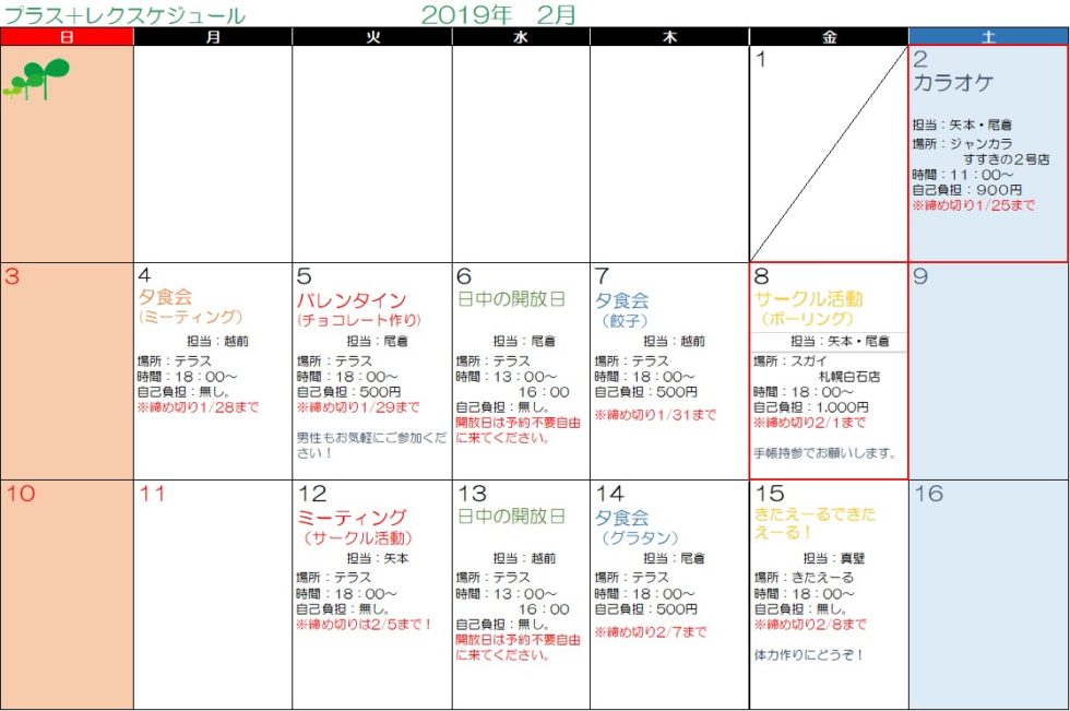2月のレクスケジュール