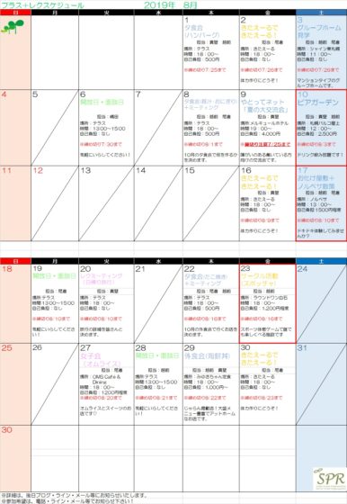 プラス+8月レクレーション予定