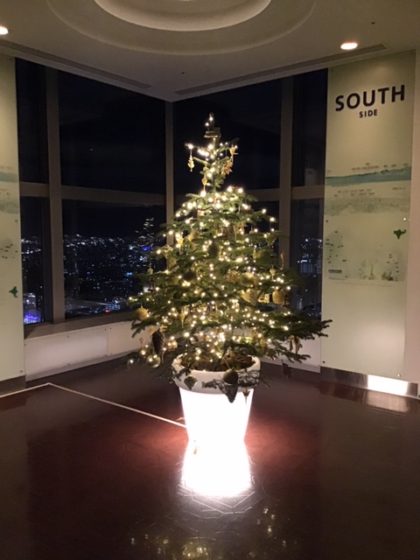 JRタワー展望室はプラス初企画!クリスマスツリーが飾ってあり、幻想的な空間でした。